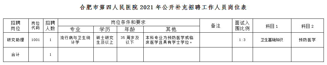 附:合肥市第四人民醫(yī)院2021年公開補(bǔ)充招聘工作人員崗位表
