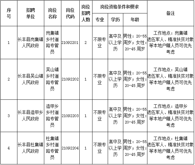 6.原則上不跨越鄉(xiāng)鎮(zhèn)(區(qū))招募,就近從轄區(qū)內(nèi)常住人員中選聘。同等條件下退伍軍人、精準扶貧對象等本地戶籍人員可優(yōu)先考慮。