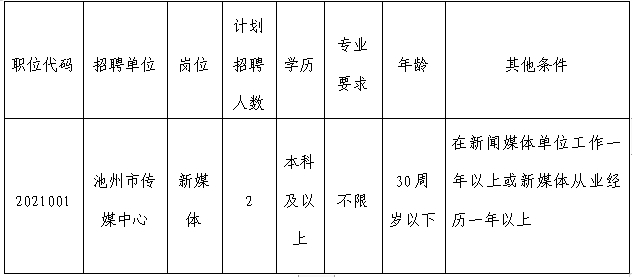 2021年池州市傳媒中心編外工作人員招聘公告