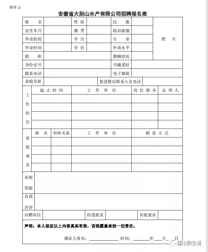 僅接受現場報名(雙休日不接受報名),報名時需提交本人學歷證書、身份證、戶口本原件及復印件各一份,與報考崗位相關的職稱(職業(yè)資格)證書、獲獎(表彰)證書原件及復印件各一份,本人近期同底一寸證件照片3張。報名時填寫《安徽省大別山水產有限公司招聘報名表》(附件2)一份,應聘者報名信息必須與本人實際情況一致,凡弄虛作假者,一經查實,取消面試、聘用資格。