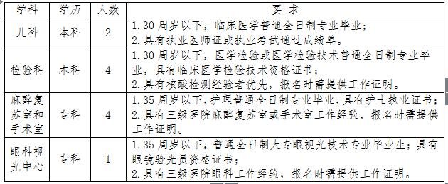 2021-12-07 20:34:27閱讀()太和縣人民醫(yī)院根據(jù)2021年招聘計(jì)劃,結(jié)合疫情期間急需崗位需要,經(jīng)2021年12月3日院長(zhǎng)辦公會(huì)議研究,現(xiàn)對(duì)兒科、檢驗(yàn)科、麻醉復(fù)蘇室、手術(shù)室和眼科視光中心急需人員面向社會(huì)公開(kāi)招聘。