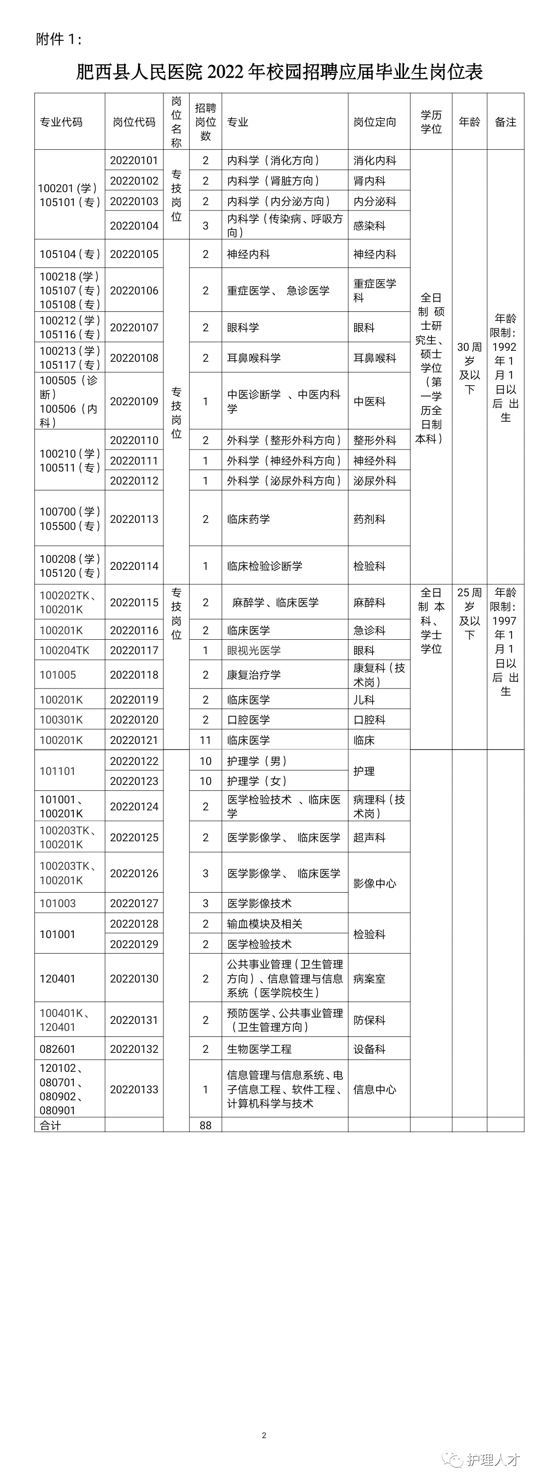 附件1:肥西縣人民醫(yī)院2022年校園招聘應(yīng)屆畢業(yè)生崗位表.docx
