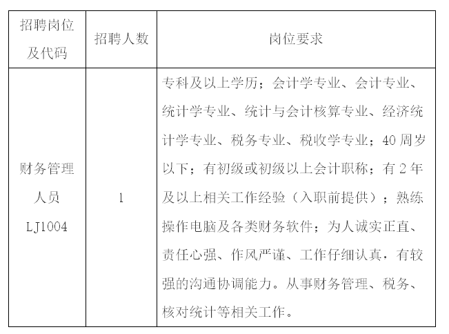現(xiàn)因業(yè)務發(fā)展需要,面向社會招聘勞務派遣工作人員1人。具體事項公告如下: