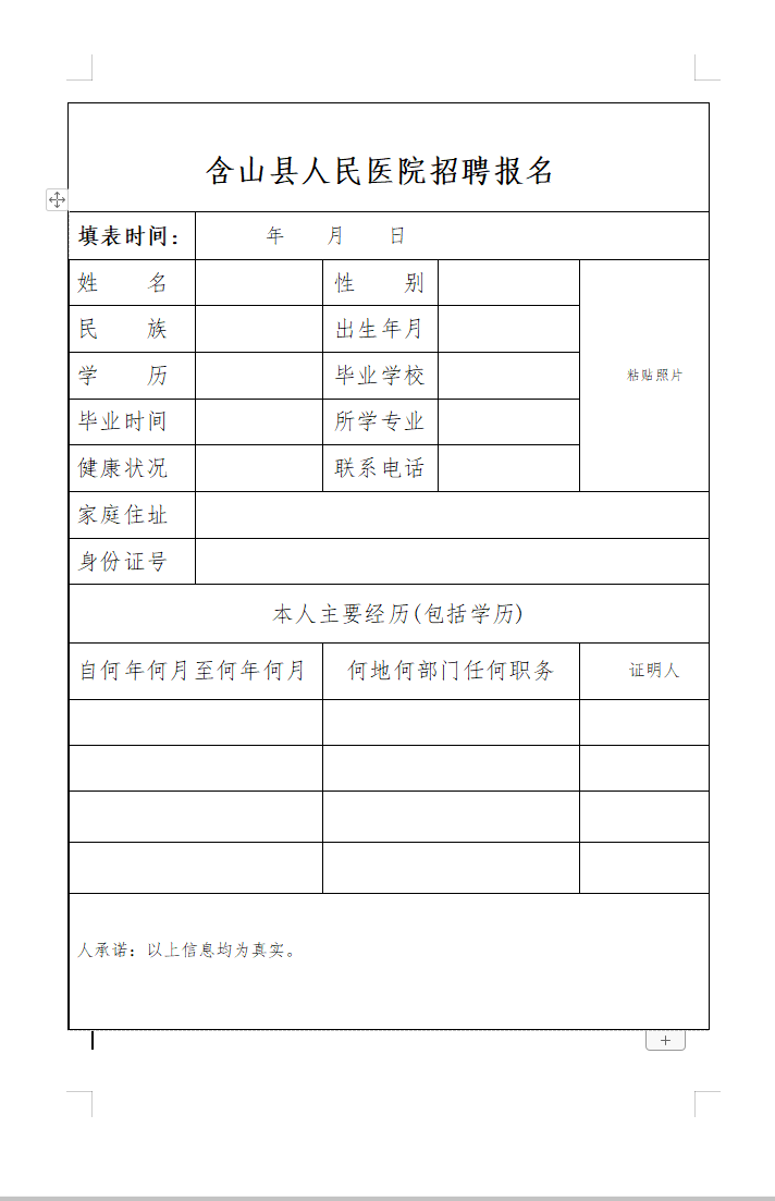 附件1:《含山縣人民醫(yī)院招聘報(bào)名表》