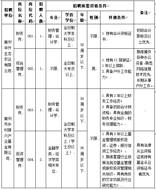 宿州市鄉(xiāng)村振興投資集團有限公司是我市市屬國有企業(yè),是推動我市農業(yè)農村發(fā)展,加快推進鄉(xiāng)村振興的重要平臺。為建立健全現(xiàn)代企業(yè)制度,充實子公司人員隊伍,根據集團發(fā)展需要及子公司用工實際,根據相關規(guī)定,經集團公司研究,擬面向社會公開招聘工作人員5名,其中宿州市鄉(xiāng)村振興產業(yè)基金有限公司3名,宿州華升生態(tài)農業(yè)有限公司2名?,F(xiàn)將有關事項公告如下: