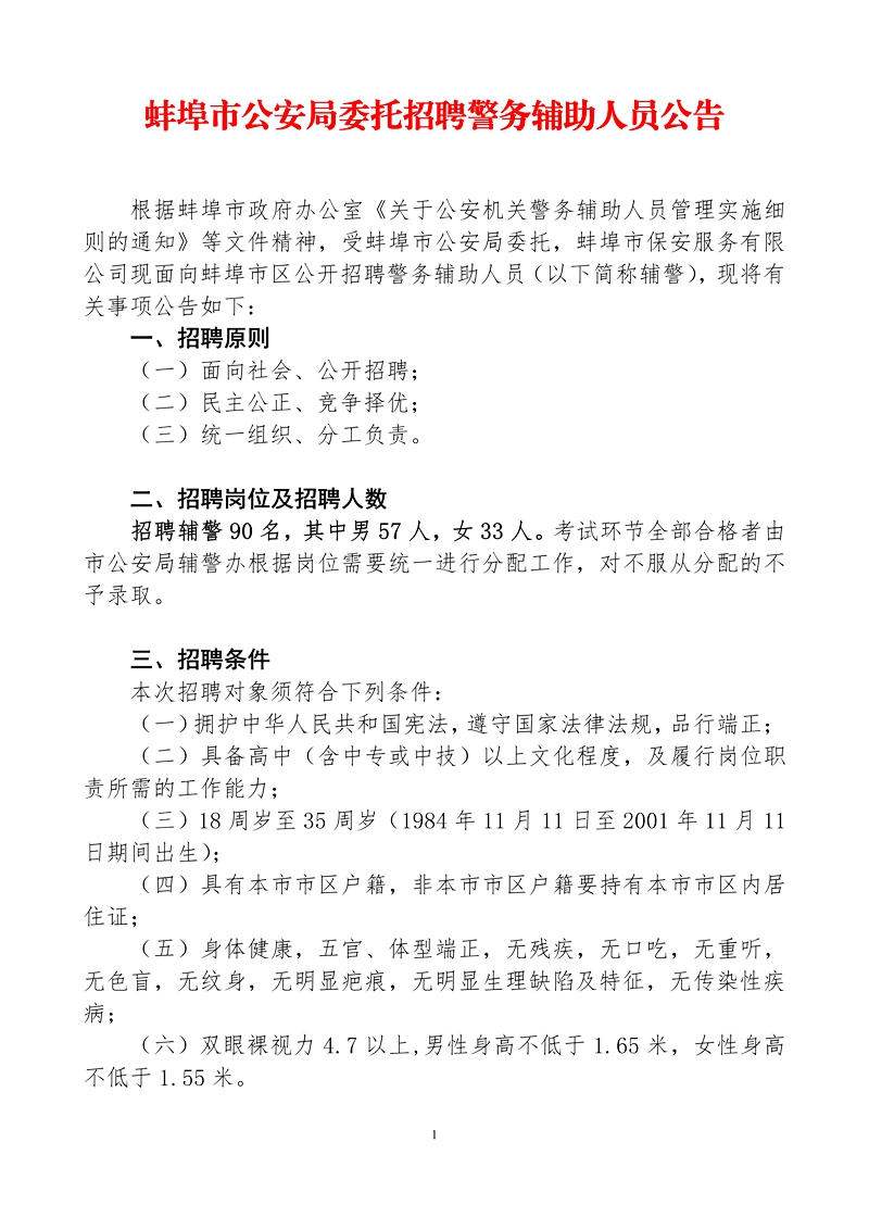 2019年蚌埠市公安局招聘警務(wù)輔助人員公告