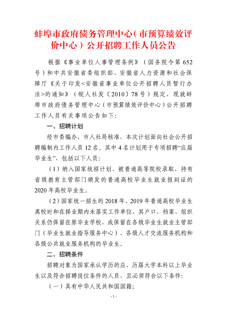 原標(biāo)題:2020年蚌埠市政府債務(wù)管理中心(市預(yù)算績效評(píng)價(jià)中心)公開招聘工作人員公告