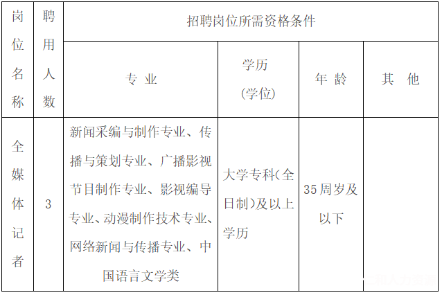 通過(guò)第三方勞務(wù)派遣方式招聘全媒體記者3名。