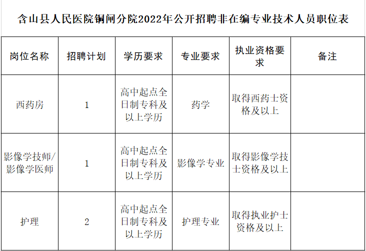 2022年馬鞍山含山縣人民醫(yī)院銅閘分院公開招聘非在編專業(yè)技術(shù)人員公告