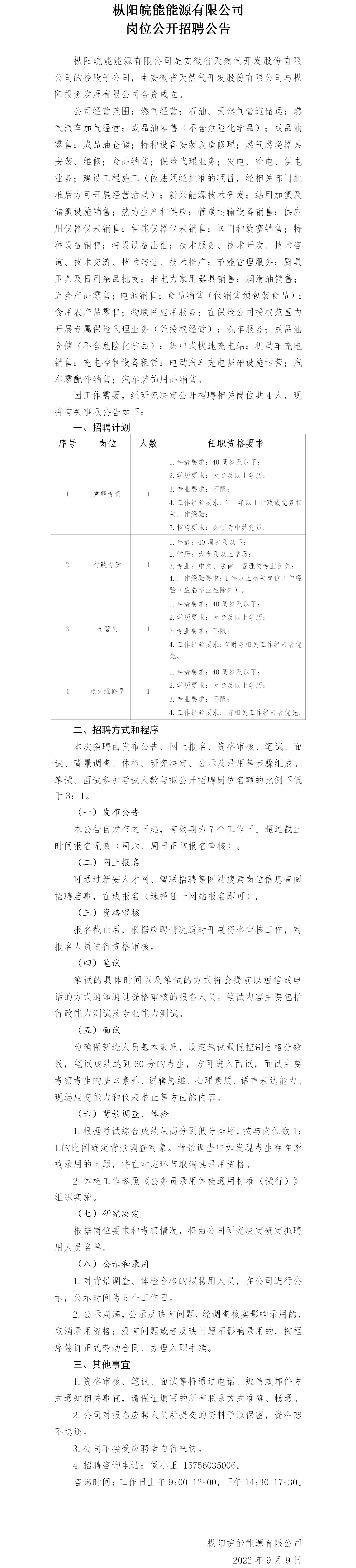 2022年銅陵樅陽皖能能源有限公司崗位公開招聘公告