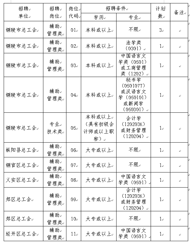 因工作需要,銅陵市總工會(huì)現(xiàn)面向社會(huì)公開招聘工會(huì)社會(huì)化工作者(聘用人員)13名,特制定如下公開招聘方案: