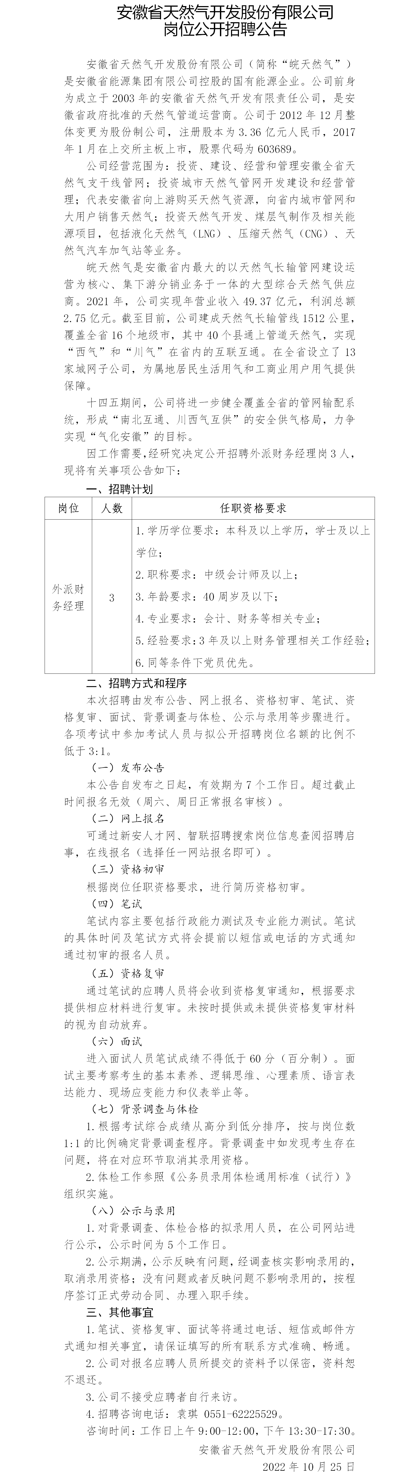2022年安徽省天然氣開(kāi)發(fā)股份有限公司崗位公開(kāi)招聘公告(二)
