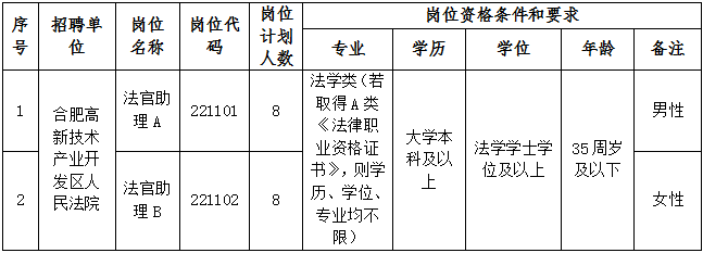 (六)具有法學(xué)類大學(xué)本科及以上學(xué)歷,法學(xué)學(xué)士學(xué)位及以上;若取得A類《法律職業(yè)資格證書》,則學(xué)歷、學(xué)位、專業(yè)均不限。