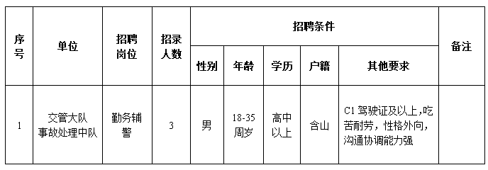 (五)戶籍含山,居住在含城優(yōu)先,取得C1以上駕駛證,并且能吃苦耐勞,性格外向,溝通協(xié)調(diào)能力強的,同等條件下,退役軍人優(yōu)先錄用。