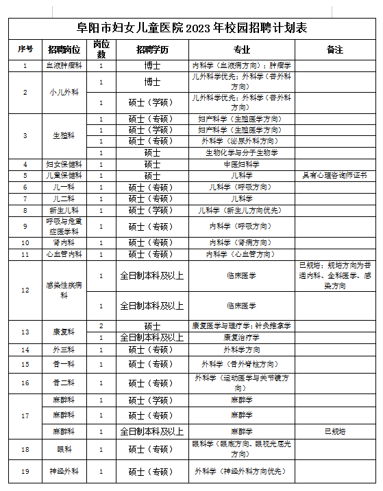 附件:阜陽(yáng)市婦女兒童醫(yī)院2023年校園招聘計(jì)劃表