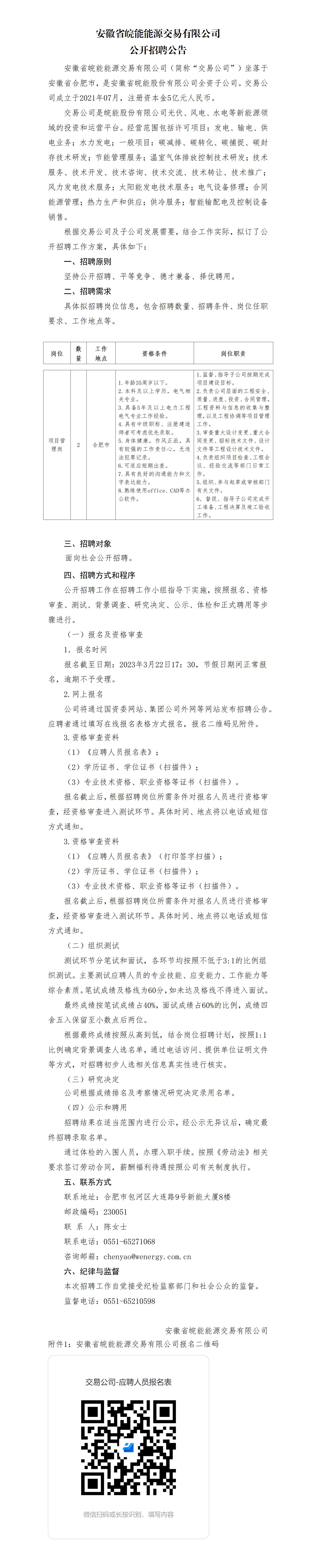 2023年安徽省皖能能源交易有限公司公開(kāi)招聘公告