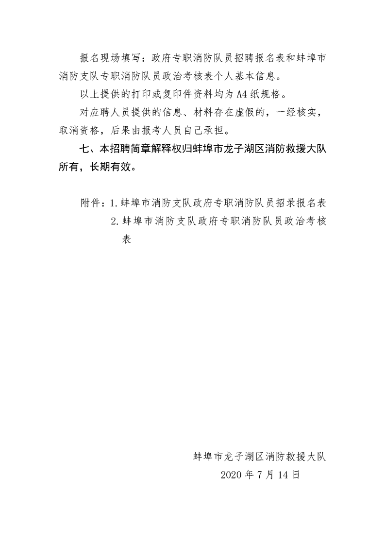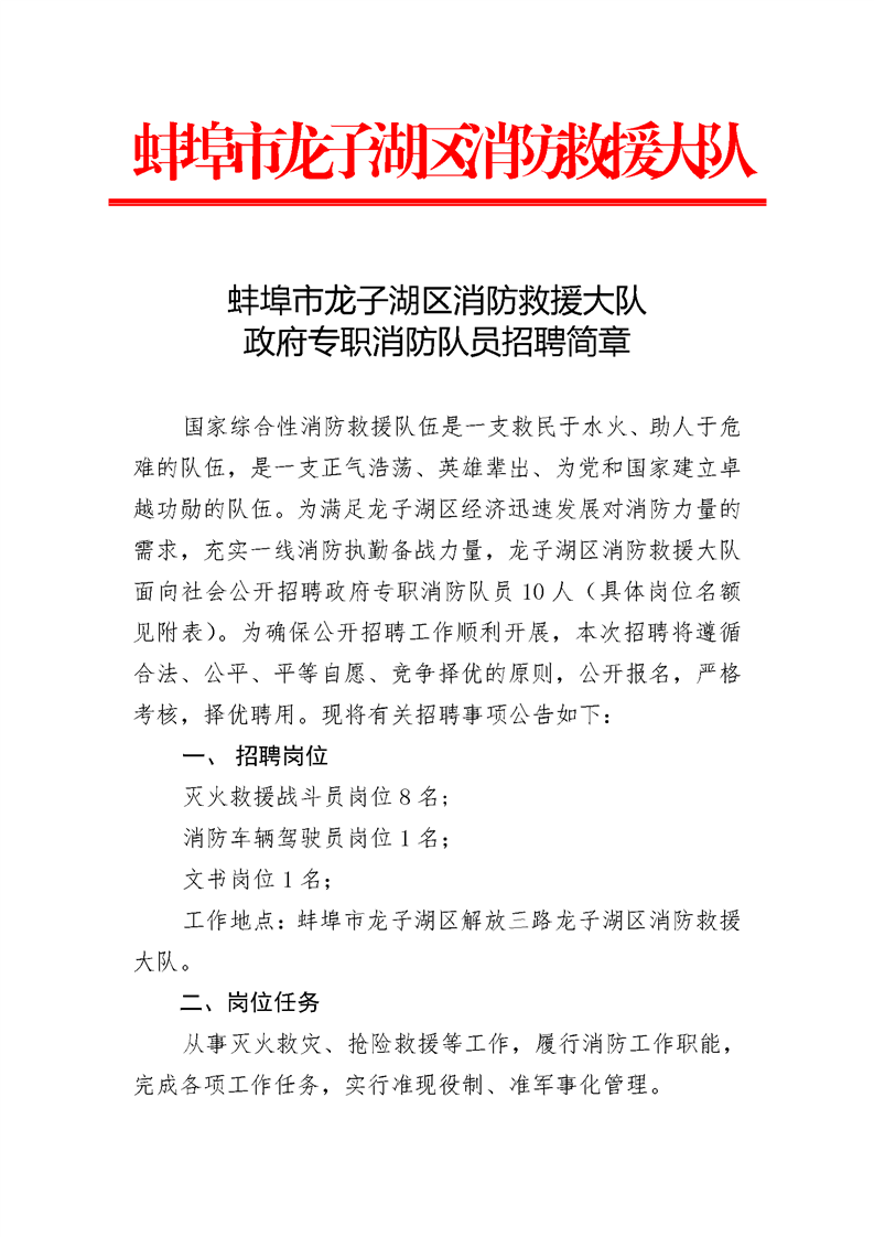 七、本招聘簡章解釋權(quán)歸蚌埠市龍子湖區(qū)消防救援大隊(duì)所有,長期有效。