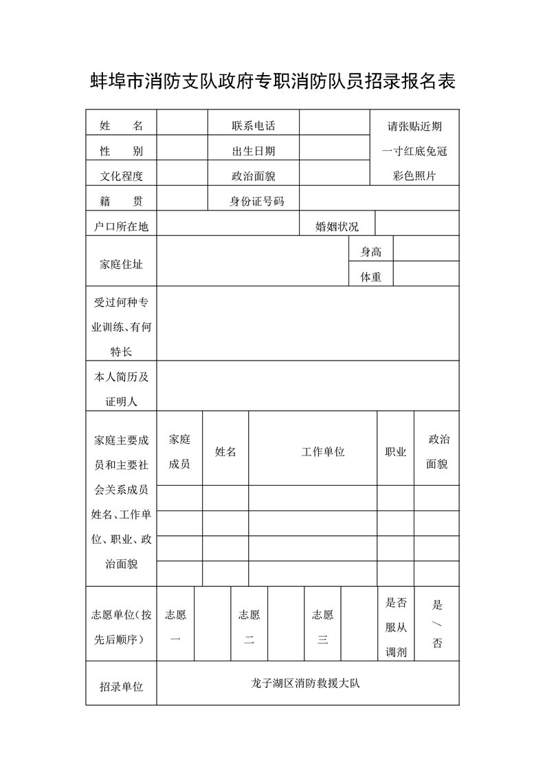 附件: 1.蚌埠市消防支隊(duì)政府專職消防隊(duì)員招錄報(bào)名表