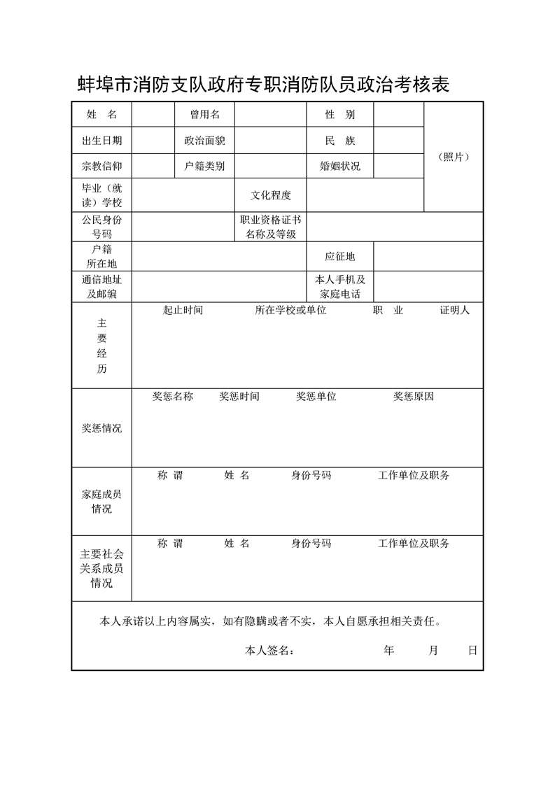 2.蚌埠市消防支隊(duì)政府專職消防隊(duì)員政治考核表