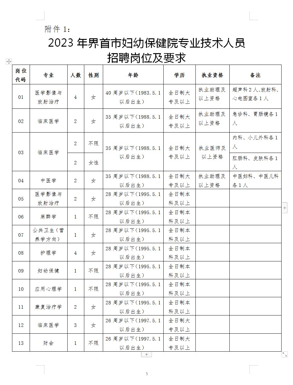 咨詢電話:0558-4896168(界首市婦幼保健院人事科)