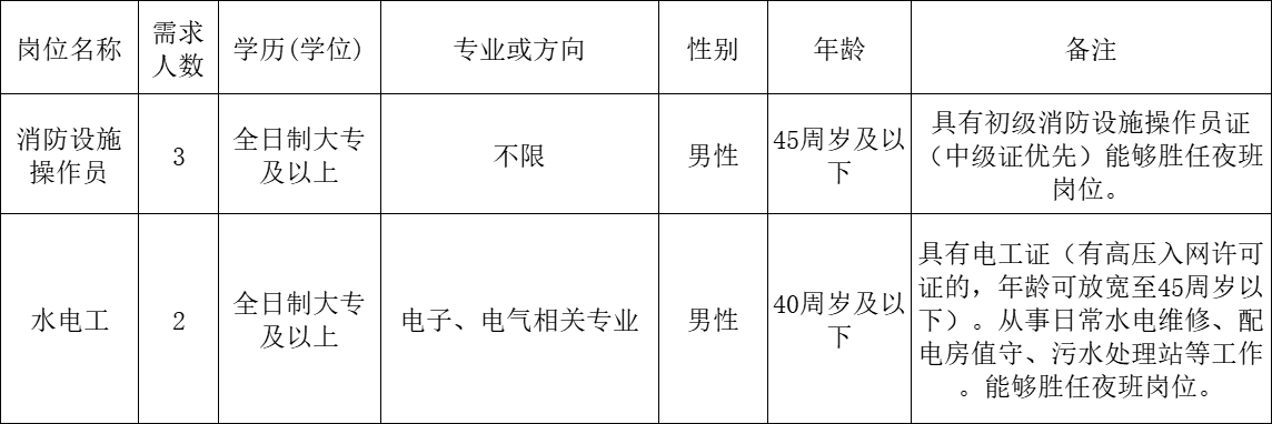1.對公告無異議人員,由公司委派到黃山市傳染病醫(yī)院(黃山市人民醫(yī)院西區(qū))從事消防設施操作員、水電工工作。