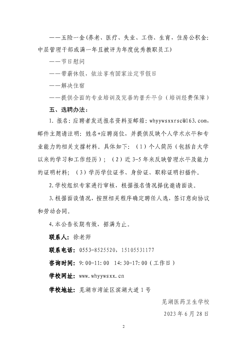 2023年蕪湖醫(yī)藥衛(wèi)生學(xué)校行政管理崗位招聘公告
