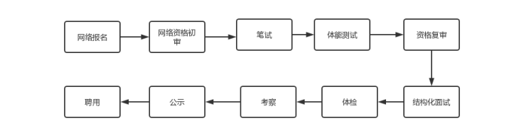 本次公開招聘工作委托安徽皖信人力資源公司組織實(shí)施,按照網(wǎng)絡(luò)報名、網(wǎng)絡(luò)資格初審、筆試、體能測試、資格復(fù)審、結(jié)構(gòu)化面試、體檢、考察、公示與聘用的程序進(jìn)行。
