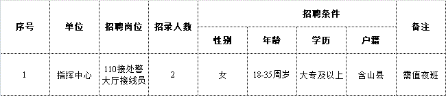 詳見(jiàn)附件1《含山縣公安局招聘警務(wù)輔助人員職位表》
