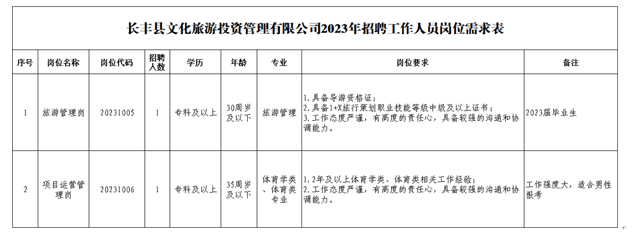 2023年合肥長豐縣文化旅游投資管理有限公司招聘工作人員公告
