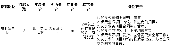 因工作需要,蚌埠城創(chuàng)人力資源服務(wù)有限公司現(xiàn)招聘2名工作人員,派駐蚌埠城信建材科技有限公司工作。現(xiàn)將有關(guān)事項(xiàng)公告如下: