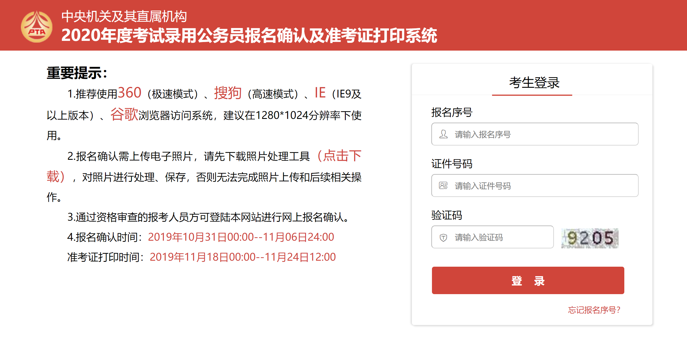 中央機關(guān)及其直屬機構(gòu)2020年度考試錄用公務員報名確認及準考證打印網(wǎng)址:http://gwy.cpta.com.cn