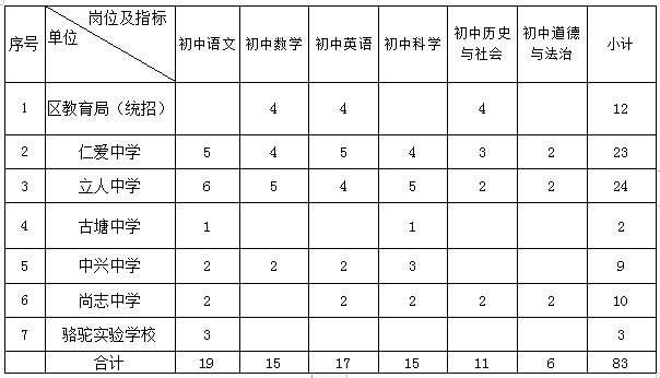 本次招聘分學(xué)段進(jìn)行,小學(xué)、幼教、特教場(chǎng)次招聘計(jì)劃崗位數(shù)107名,初中場(chǎng)次招聘計(jì)劃崗位數(shù)83名,具體如下:
